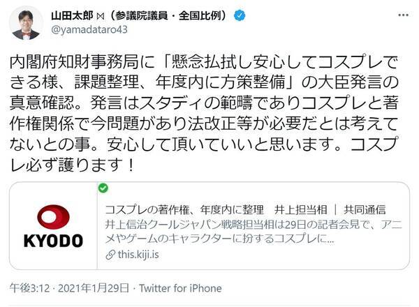 政府も自民党内も問題があると認識していない コスプレ著作権ルール化報道について山田太郎参議院議員に聞いてみた 21年1月29日 エキサイトニュース