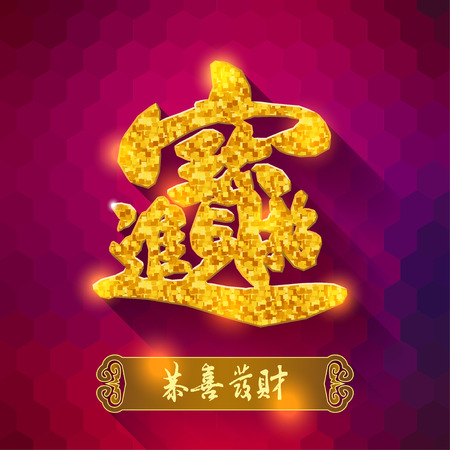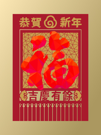 中国の新年の伝統的なの縁起の良いシンボル 低ポリゴン スタイルとグリーティング カード デザイン 中国語の文字の意味 春とフォーチュン のイラスト素材 ベクタ Image